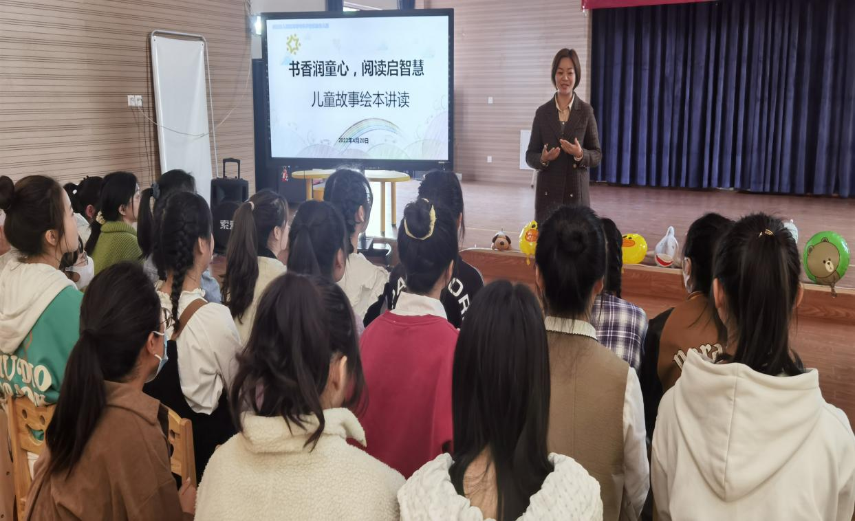 书香润童心,阅读启智慧。阅读,应从娃娃抓起。2022年4月20日上午9:00,图书馆馆员、图书管理委员会指导老师郑小波带队,17名入围第五届“4·2世界儿童阅读日”主题系列阅读推广活动之儿童故事绘本现场讲读大赛决赛的选手来到附属幼儿园时光分园音乐厅,为孩子带去一个个精彩绝伦的故事讲读。