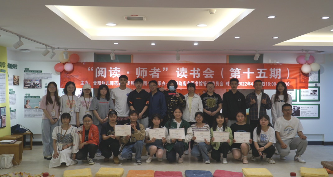 2022年4月24日18:00,由贵阳幼儿师范高等专科学校图书馆主办、图书管理委员会阅读推广部承办的“阅读·师者”读书会(第十五期)活动在峻德楼负一楼贵州省幼儿教师师德体验馆圆满举办!本次活动共有21位同学带来精彩分享和推荐,图书馆馆员郑小波老师、学早系专任教师周勇老师、阅读课程指导师周梦莉老师以及多次荣获读书会奖项的梁鹏学长担任本次读书会观察评价嘉宾。