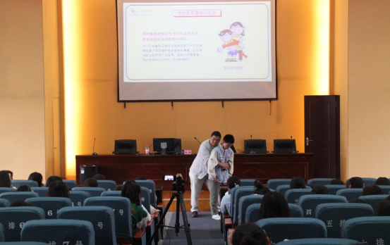 陈老师演示了利用海姆立克急救法救自己和救他人。利用海姆立克急救法,根据年龄的大小,选择不同的方法,掌握了海姆立克急救法,不管是对自己还是对别人都是有益的。陈老师真诚的交流、深入浅出的演示让我们学会了简单的急救知识,也让我校师生真切感受到了急救知识普及的必要性。讲座常常被阵阵的掌声包围,现场气氛十分热烈。此次活动以同学们热情的提问和陈杨老师耐心的回答结束了讲座,热烈的掌声也代表了此次活动的圆满结束。