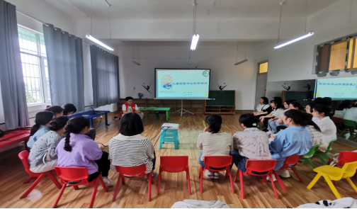 活动结束后小朋友们回到教室,图书管理委员会指导老师郑小波与幼儿老师分享《浅谈儿童图画书阅读指导》与园内老师进行“自主游戏”“儿童图画书”等的交谈。过后进行了黔籍图书的捐赠活动,并拍照留念。