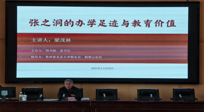 为传承近代教育先驱精神,解锁张之洞办学足迹背后的教育密码,深化同学们对中国近代教育发展的认知,本期图书馆(励学书院)红枫讲坛有幸邀请到原贵州教育出版社编审、贵州省文史研究馆馆员梁茂林老师,于2025年11月28日在图书馆多功能报告厅开展《张之洞的办学足迹与教育价值》讲座。本次讲座吸引了众多师生踊跃参与,共同沿着张之洞的办学轨迹,探寻其教育理念与实践的成长逻辑与精神内核。